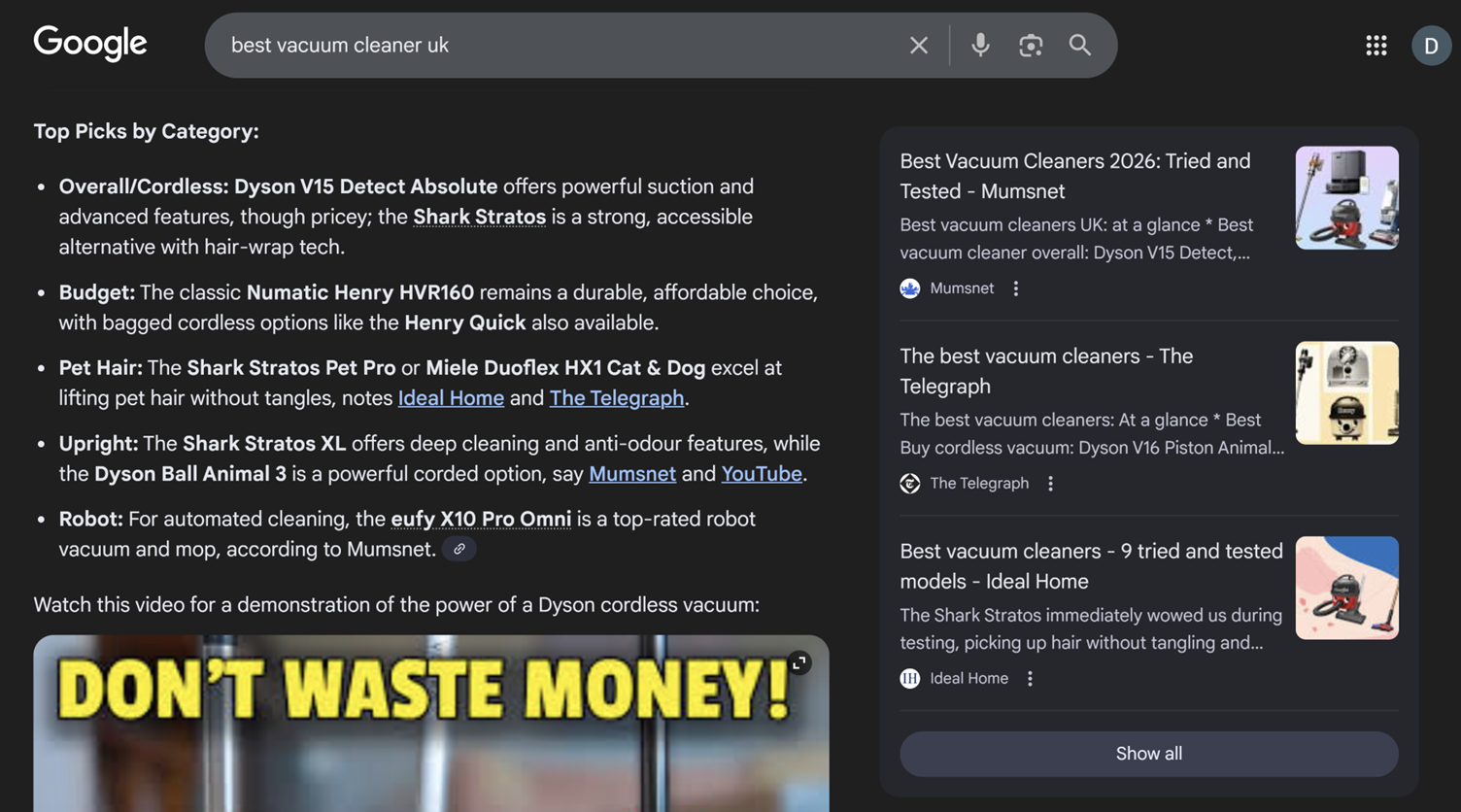 One of the less visible impacts of AI-led discovery is the loss of a consistent starting point. Search results, AI summaries, and recommendations now vary based on user behaviour, past interactions, location, and prompt structure. Two users searching for the same product may be shown entirely different options, messaging, or routes into a site. From a testing perspective, this challenges the assumption that journeys are stable and repeatable.